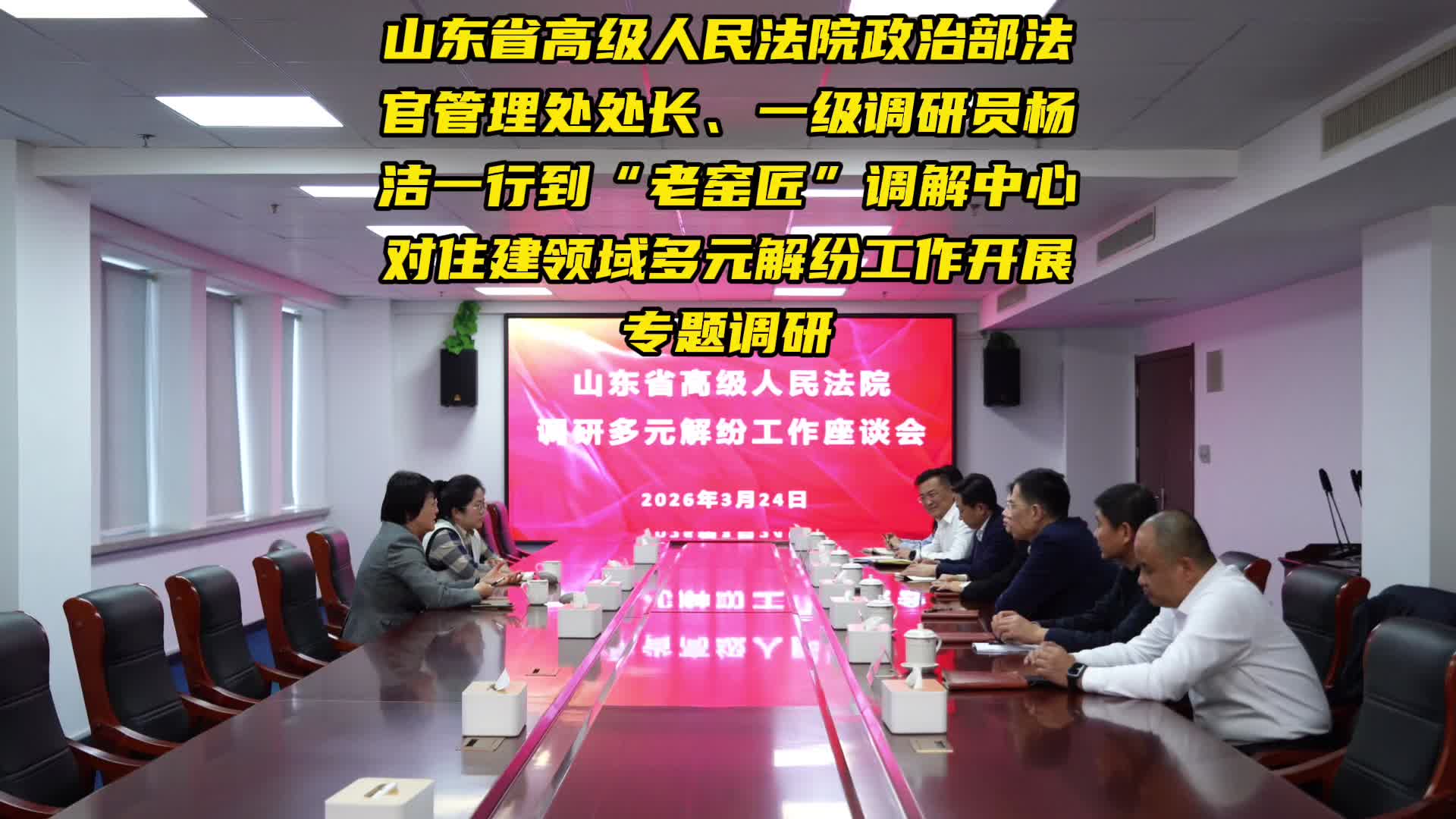 山東省高級(jí)人民法院政治部法官管理處處長(zhǎng)、一級(jí)調(diào)研員楊潔一行到“老窯匠”調(diào)解中心對(duì)住建領(lǐng)域多元解紛工作開展專題調(diào)研